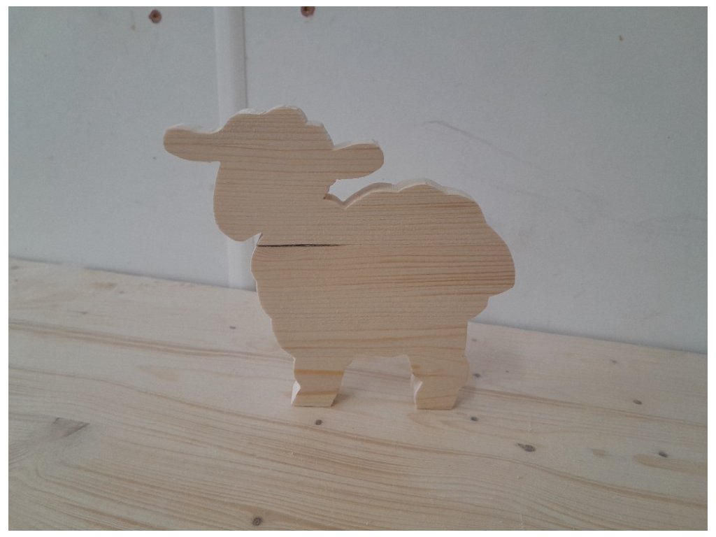 Krásný malý beránek z masivního dřeva k dotvoření v tlouštce 1,8 cm.