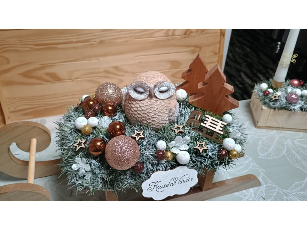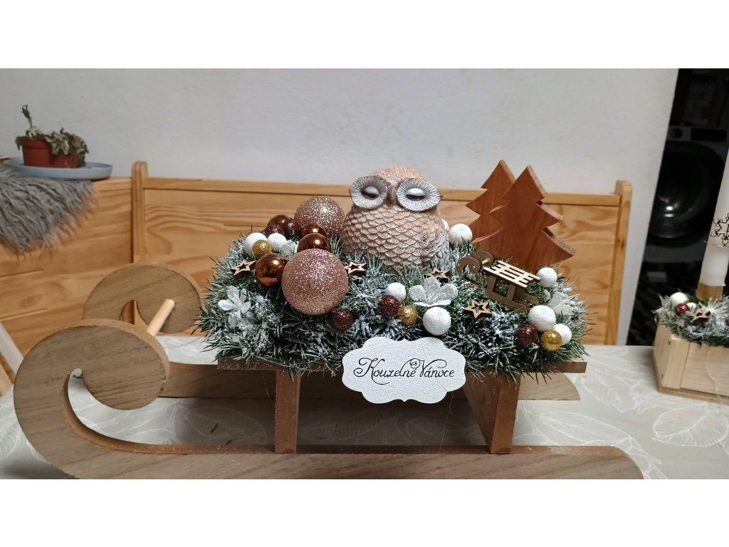Adventni svícny a dekorace zdobené Sáňky sovička