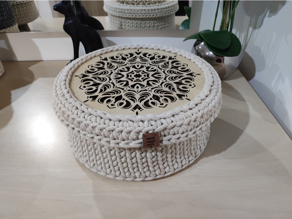 Hačkované výrobky od Vendulky Velký háčkovaný košík s vyřezávaným víkem