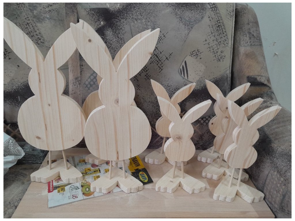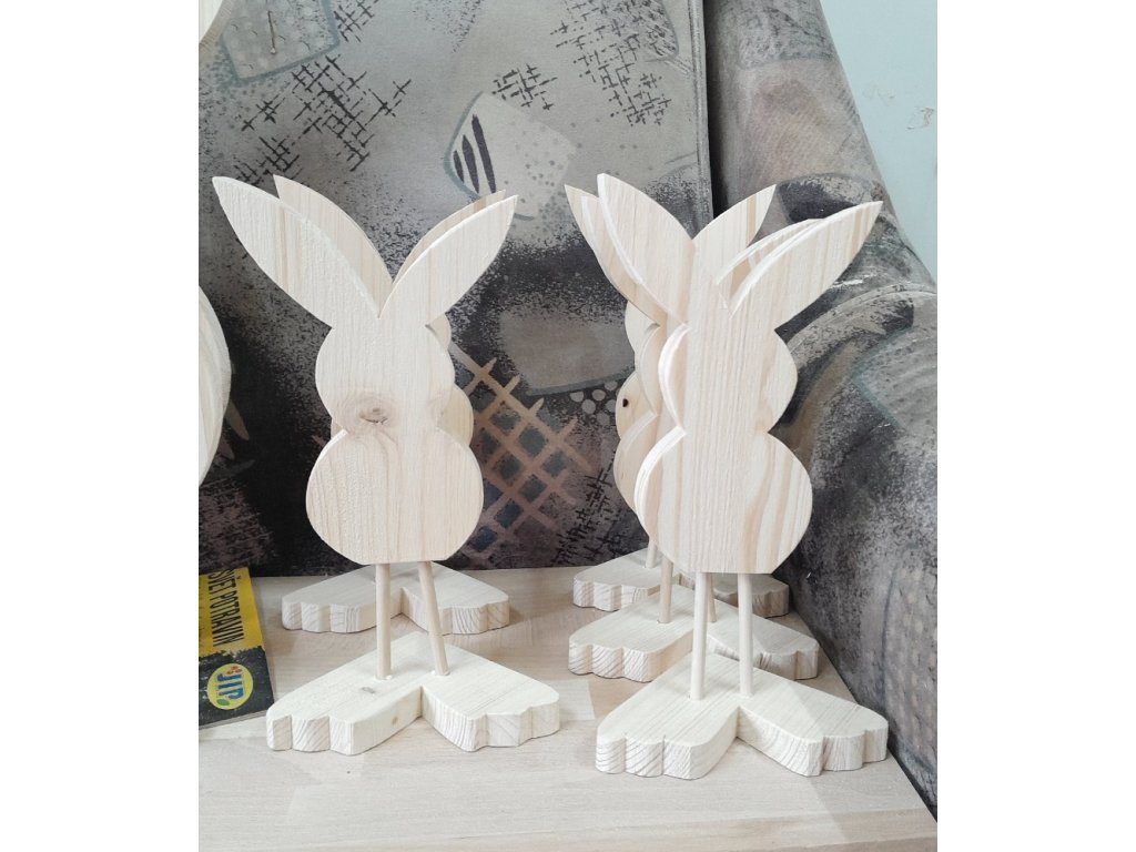 Dřevěné polotovary na podstavci-tvary různé Velikonoční výřezy k dotvoření Zajíc na nožkách 26 cm