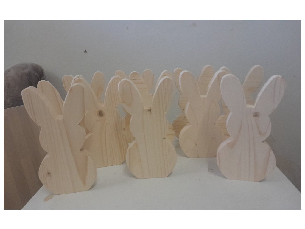 Dřevěné polotovary na podstavci-tvary různé Velikonoční výřezy k dotvoření Zajíč ušák 18 cm