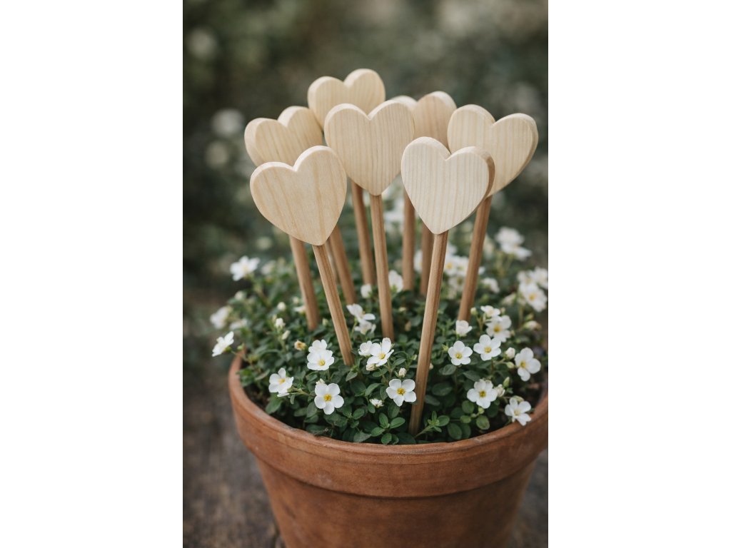 Dřevěné polotovary na podstavci-tvary různé Dřevěné zápichy Zápich srdce 5x5 cm